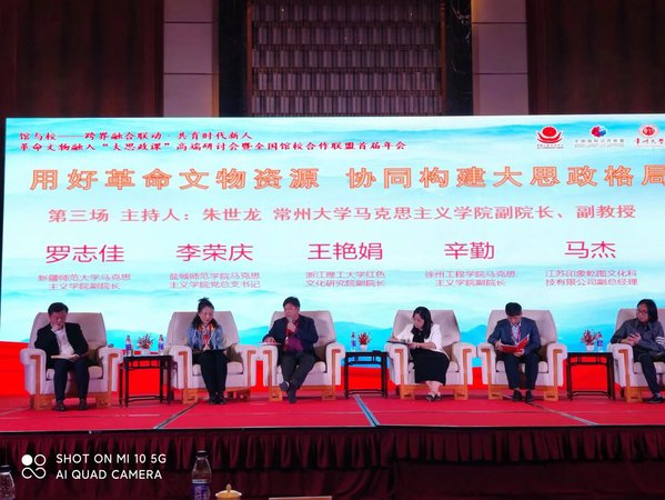 为深入学习贯彻习近平总书记关于用好红色资源,赓续红色血脉的系列重要论述和重要指示精神,5月6日,由中国文物交流中心、全国馆校合作联盟、常州大学联合主办的“馆与校——跨界融合联动 共育时代新人 革命文物融入大思政课高端研讨会暨全国馆校合作联盟首届年会”在常州举行。来自国家文物局革命文物司、中国文物交流中心、中共江苏省委教育工作委员会、江苏省文化和旅游厅、陕西省文物局、南京出版传媒集团、常州大学嘉宾代表,以及全国馆校合作联盟部分高校马克思主义学院院长、革命博物馆纪念馆馆长、讲解员、评论人及常州大学教师代表共100余人参加。