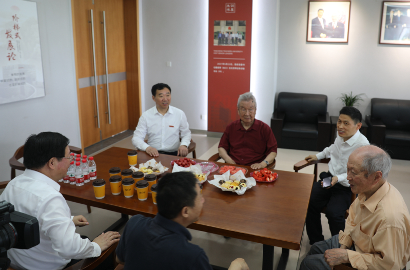 朱训老先生一行参观了“朱训书屋”,了解书屋的使用和管理情况,并与大家亲切会谈。戴斌荣对朱训老秘书长长期以来对学校的关心表示衷心感谢,并汇报了学校发展近况。图书馆、档案馆党总支书记曹海浪介绍书屋概况。朱训老先生对书屋建设表示了赞许,在一幅幅珍贵的老照片前驻足良久,深情回忆学习和工作历程。