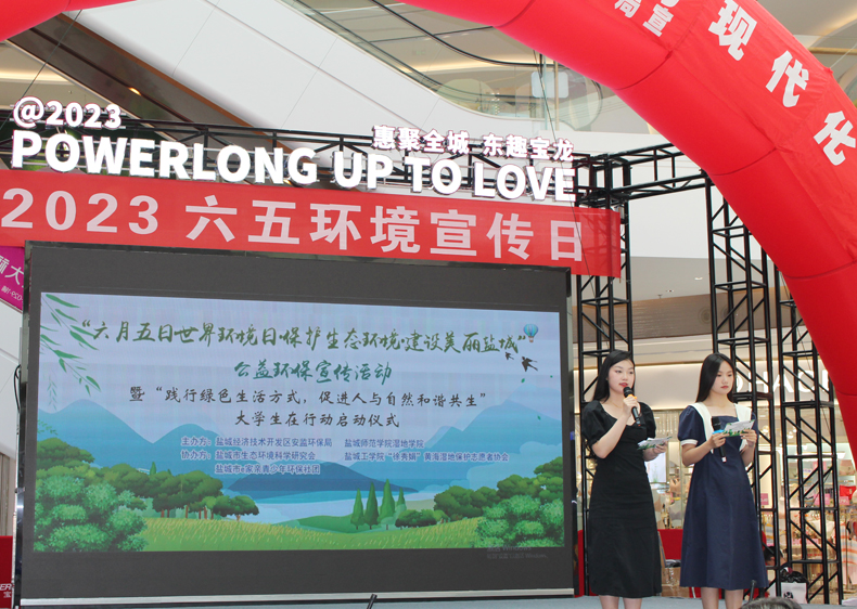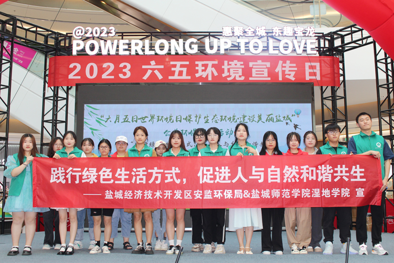 为全面贯彻落实党的二十大精神,大力宣传习近平生态文明思想,6月3日,盐城经济技术开发区安监环保局联合伟德官网湿地学院在城东宝龙广场共同举办2023年世界环境日环保公益宣传活动暨“践行绿色生活方式,促进人与自然和谐共生”大学生在行动启动仪式。