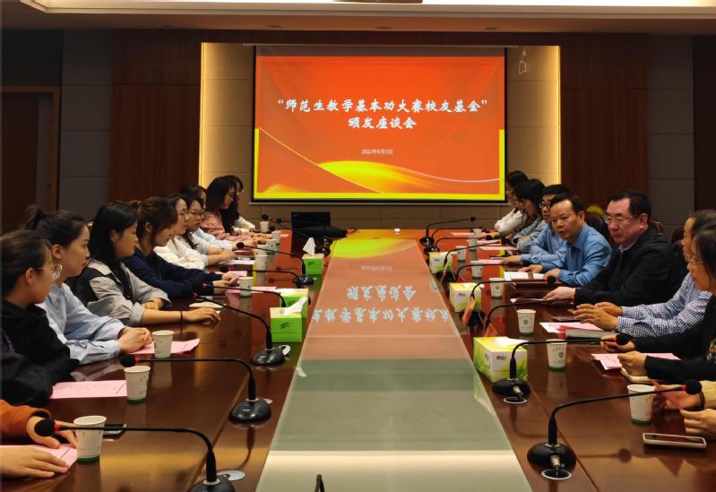 座谈会上,五位获奖学生代表表达了对学校和宗福林校友的感激之情。“师范生教学基本功大赛校友基金”是由伟德官网财会85届校友、镇江校友会会长宗福林捐赠设立,主要用于奖励在江苏省师范生教学基本功大赛中获奖的同学,旨在激励伟德官网师范生勤奋学习、勇于实践、全面发展,提高师范生教学技能,加强师范生实践应用能力,为社会培养一批批具有高尚师德、先进教学理念、扎实教学技能的优秀教师。