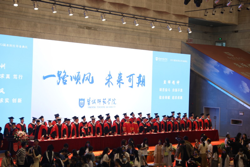 毕业典礼开始前,学校举办了毕业歌会,全场收看了“回望”主题暖场视频、“盐师出高徒(2023版)”主题视频,热烈庆祝2023届毕业生们圆满完成学业,踏上人生新征途。此外,学生家长、广大校友、社会各界人士共3.6万余人线上收看毕业典礼直播。