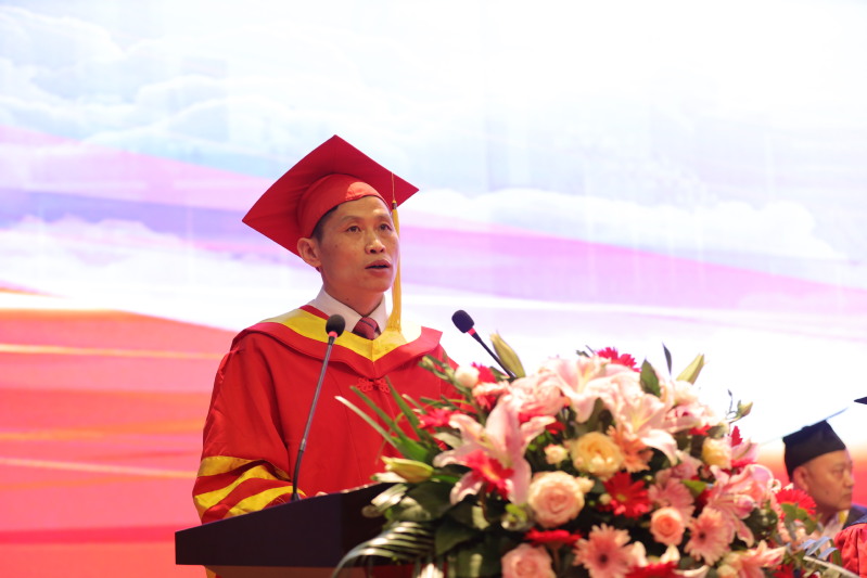 张宏如代表学校向圆满完成学业、即将开启人生新篇章的同学们表示最热烈的祝贺,向养育、教导、帮助学生的家长、老师和亲朋好友们致以由衷的感谢和崇高的敬意。对于即将奔赴祖国各地、开启人生新篇章的盐师学子,张宏如作离别前赠言,他提出四点希望:第一,奋斗之路,须先立志,希望同学们胸怀家国挺膺担当。第二,奋斗之路,须强内功,希望同学们练就本领砥砺未来。第三,奋斗之路,须劳筋骨,希望同学们千锤百炼锻造锋芒。第四,奋斗之路,须重立德,希望同学们德才兼修行稳致远。