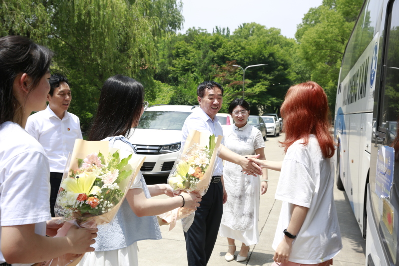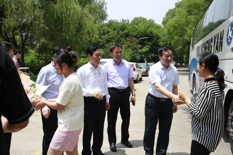 伟德官网第27批新疆支教团圆满完成支教任务,分别于6月17日和21日顺利返校,学校在通榆校区图书馆门口为他们举行欢迎仪式,学校党委书记戴斌荣,党委常委、副校长庞波出席欢迎仪式。