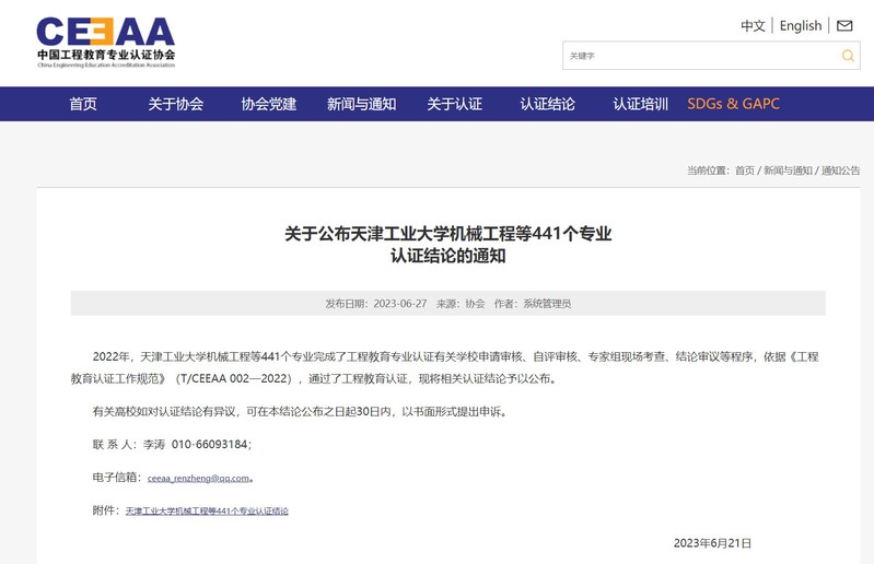 近日,中国工程教育专业认证协会发布《关于公布天津工业大学机械工程等441个专业认证结论的通知》,伟德官网软件工程专业通过认证,有效期6年(2023年1月-2028年12月),是伟德官网首个通过工程教育认证的专业,也是继伟德官网14个师范类专业通过认证以后,在专业认证方面取得的又一重大突破。