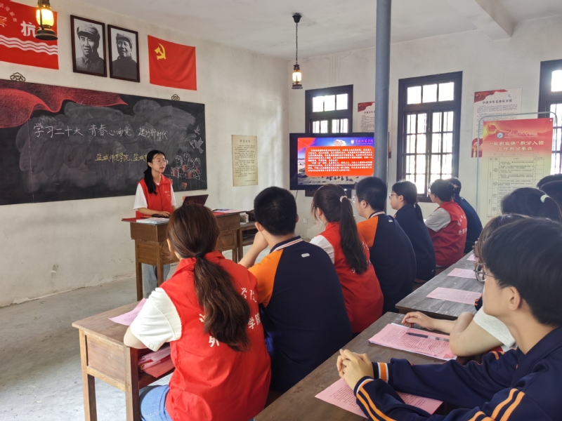 为全面贯彻党的二十大精神,用理论武装青年头脑,用汗水和行动勇担青年使命。理论普及宣讲团开展“理论宣讲进基层”主题活动。外国语学院“两弹一星”精神理论普及宣讲团走进盐城市初级中学抗大五分校旧址,向中学生团员讲述“两弹一星”精神内涵和历史意义。历史与公共管理学院“普法大篷车”法治宣传教育团队,与地方、中小学、公益组织联手搭建法治宣传教育“流动课堂”,让法治信仰蓬勃生长。化学与环境工程学院走进盐城各大中小学校,通过发放宣传册、禁毒我来“画”、禁毒动画展示等多种形式普及禁毒知识。商学院心火青年宣讲团开展井冈山精神普及宣讲专项活动,让井冈山精神焕发新的时代光芒。