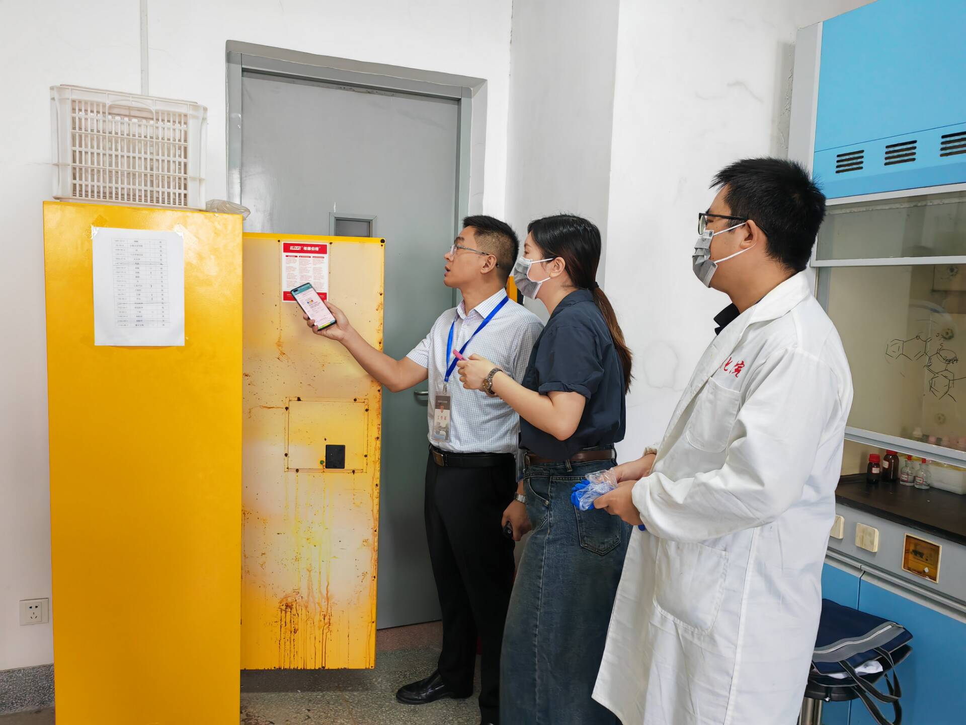 此次检查分两阶段进行。第一阶段为9月20日至26日,国有资产与实验室管理处组织涉危学院实验室主任开展了实验室安全教育培训及双节前实验室安全检查任务解读,各二级学院按照学校下发的工作通知要求开展了实验室安全自查自纠;第二阶段为9月27日,对学校危化品仓库、相关二级学院科研实验室、气体钢瓶、特种设备等重点危险源进行了现场随机抽查。