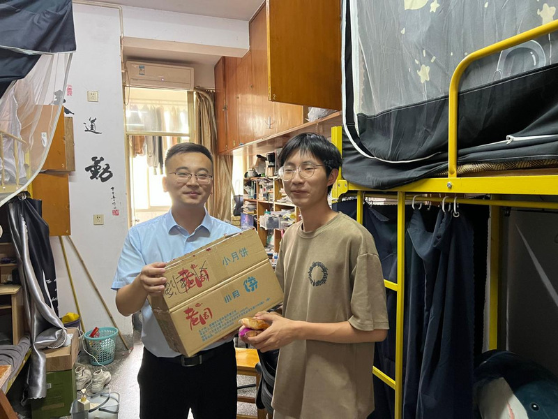 29日一早,学生工作处和后勤保障集团的老师们就开始忙碌起来。根据前期统计的留校学生数量,他们采购了8000只月饼,作为送给学生们的节日“小惊喜”。各二级学院的老师们或走进学生宿舍,或召开主题班会,将这份节日的问候送到每位留校学子的手上。