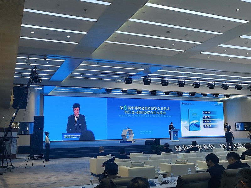 11月3日上午,以“绿色开放合作,科创共享未来”为主题的第五届中韩贸易投资博览会开幕式暨江苏—韩国经贸合作交流会在盐城国际会议中心隆重开幕。