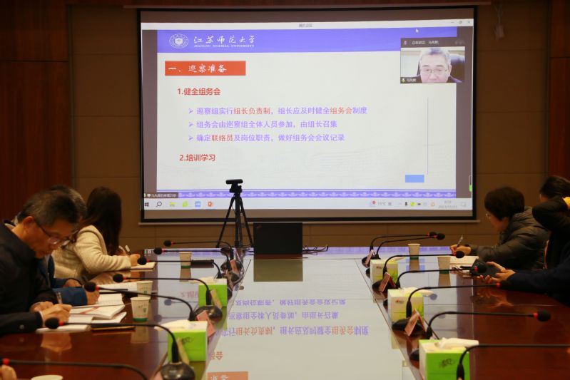 对接会后,与会人员参加巡察工作业务培训,邀请江苏师范大学党委巡察办主任马先辉作线上培训。马先辉以《高校党委巡察工作实务》为题,结合自身参加巡察工作经验详解介绍了巡察准备、巡察了解、巡察报告、巡察反馈、巡察移交、巡察整改、立卷归档等七个巡察工作的基本流程。并从做好前期准备工作、精准发现问题、规范制作底稿、高效撰写优秀报告等的四个方面就如何提高巡察工作质量做详细阐述。