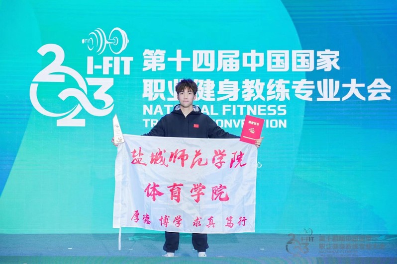 在国家体育总局人力资源开发中心、职业技能鉴定指导中心主办的第十四届中国国家职业健身教练专业大会上,体育学院赖东海同学参加中国国家职业健身教练专业大会个人体能挑战赛获得第一名,江苏获团体第一。