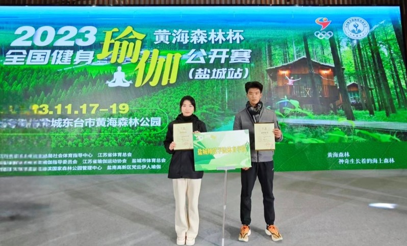 在国家体育总局社体中心和江苏省体育总会联合举办的2023年全国健身瑜伽公开赛黄海森林杯(盐城站)比赛中,体育学院黄建辰、曹可怡同学均获段位赛三等奖,伟德官网体育学院获优秀团队奖。