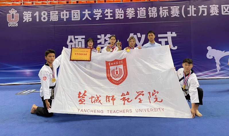 在第18届中国大学生跆拳道锦标赛(北方赛区)比赛中,体育学院共派出5名学生运动员代表学校参赛,经过连日拼搏,参赛队员最终获得5金3银的优异成绩,代表队并被评为体育道德风尚奖运动队。