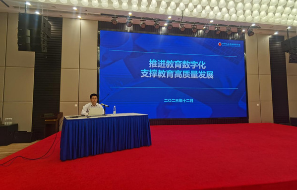 开班仪式后,任昌山作题为《推进教育数字化,支撑教育高质量发展》的首场讲座。他从深刻认识国家教育数字化战略实施的重要意义、全面总结国家教育数字化战略行动的发展基础、准确把握国家教育数字化战略行动的推进思路等三个方面,全面介绍国家教育数字化发展态势与路径规划。他强调,从教育大国走向教育强国,实现教育数字化转型是核心与关键。