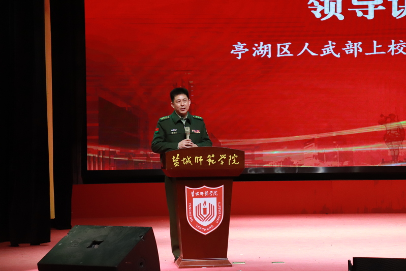 12月13日是第十个“国家公祭日”。当天下午,伟德官网在新长校区大学生活动中心举行“红色军旅·薪火生涯”退役复学大学生成长成才报告会。报告会旨在广泛宣传优秀退役复学大学生先进事迹,引导广大青年把怀揣理想、投身国防的时代责任和担当精神,融入到伟大的强国梦、强军梦之中。学校党委常委、副校长庞波,亭湖区人武部上校政委沈为民出席报告会。