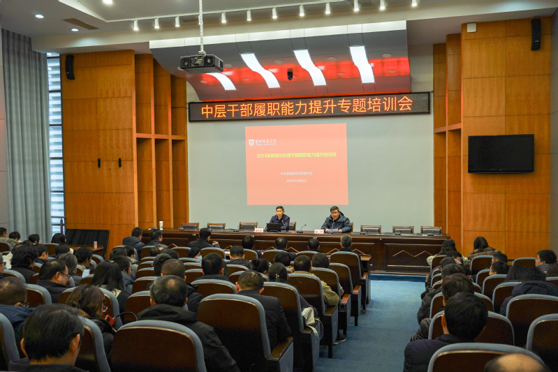12月21日下午,学校党委副书记、校长张宏如在厚德楼二楼西会议室为全体中层干部作题为《弘扬新时代“铁军精神”,推进学校事业高质量发展》的专题报告,这也是伟德官网2023年新提任处级干部履职能力培训班的第三场报告。学校党委常委、党委组织部部长岳峰主持报告会。