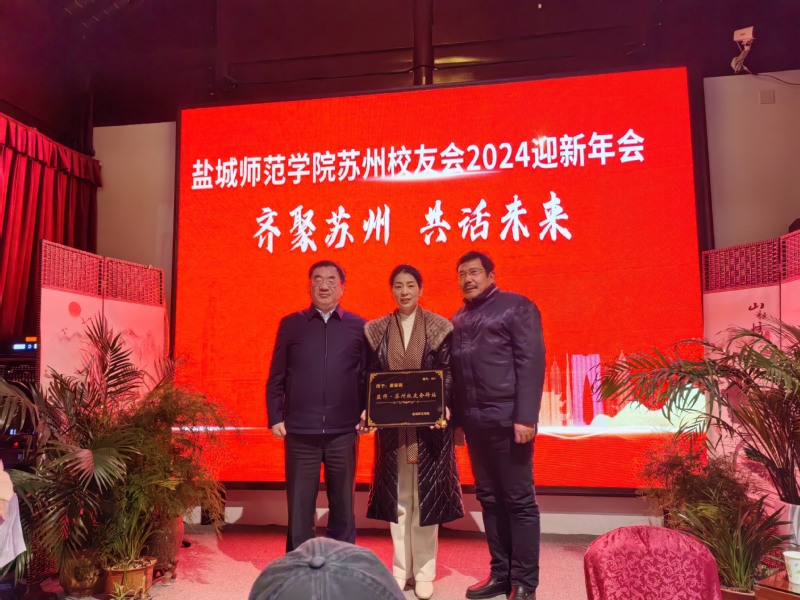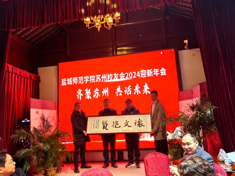 秘书长席军波作苏州校友会工作报告。学校党委常委、统战部部长费正皓宣读关于增补陈晓芳校友为苏州校友会常务副会长的批复。庞波为新任常务副会长颁发聘书,并为墨客园“盐师·苏州校友会驿站”授牌。常州校友会会长朱建中、秘书长陈爱根为苏州校友会赠送墨宝。