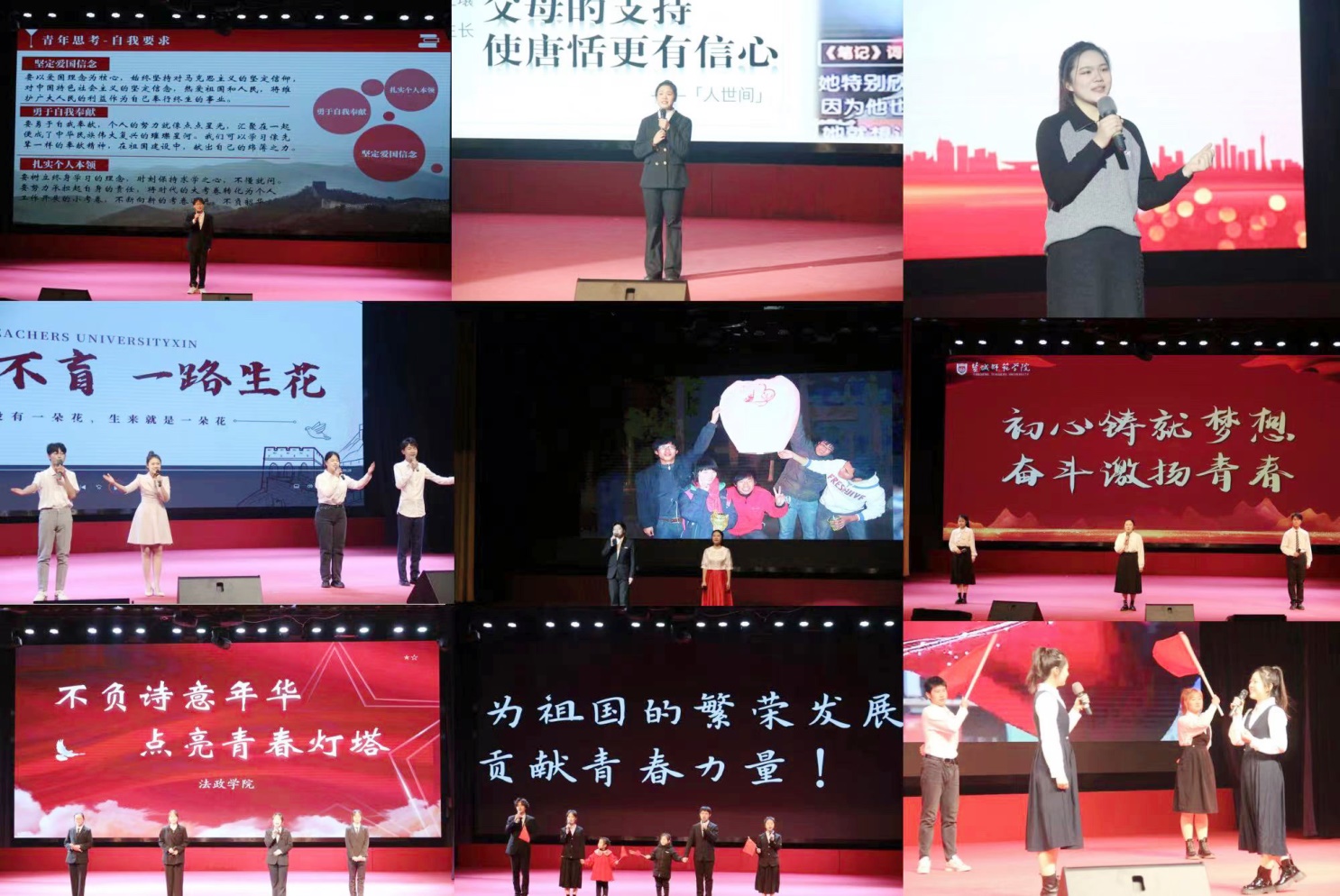 宣讲会分“榜样如光” “青春榜样” “致敬榜样”三个篇章,宣讲人员由入围决赛的9个二级学院代表队组成,他们以“理论+”的形式,推动党的创新理论在基层“宣”出特色、“讲”到深处,“声”入人心。宣讲会上,教育科学学院宣讲团通过“宣讲+文艺”的形式演绎“大山的女儿”——支月英的支教故事,讲述毕业后回乡投身公益支教事业的该院学前教育专业18届校友韦屹威的先进事迹。商学院宣讲团讲述荣获“全国脱贫攻坚先进个人”“全国乡村振兴青年先锋标兵”的该院2013届杰出校友王然玄的动人故事。文学院宣讲团以情景剧的方式讲述中国传媒大学首位播音与主持艺术专业盲人研究生——董丽娜的成长故事。大学生宣讲员以青春之声讲述榜样故事、汇聚前行力量,声情并茂地演讲、深入浅出地阐述,引发现场师生的广泛共鸣,赢得阵阵掌声。