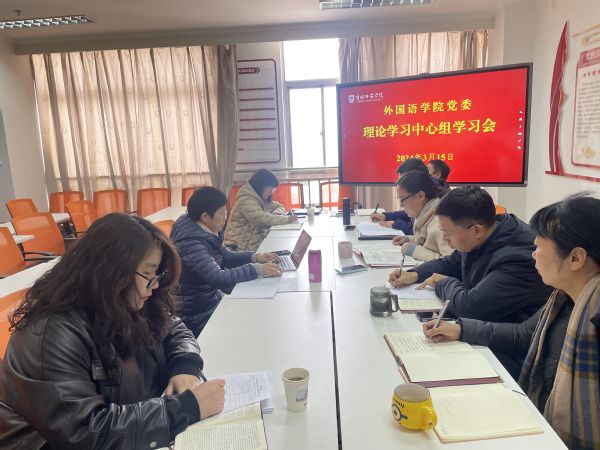 3月15日下午,学校党委常委、副校长毕凤珊巡学旁听外国语学院党委理论学习中心组集体学习会,外国语学院党委书记张宾州主持会议。