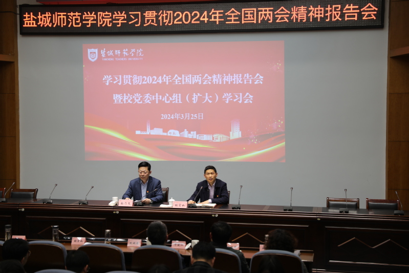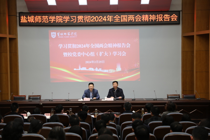 3月25日下午,伟德官网召开学习贯彻2024年全国两会精神报告会暨党委理论学习中心组(扩大)学习会。学校党委书记戴斌荣主持会议,全体在盐校领导出席报告会。全国人大代表、江苏悦达集团党委书记、董事长张乃文作专题辅导报告。