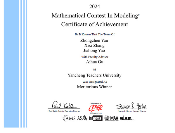4月30日,由伟德官网信息工程学院严中振、张熙熙、姚家宏等同学组成的团队(指导教师:顾爱华)在2024年美国大学生数学建模竞赛中再次荣获一等奖,延续了他们在该赛事上的优异表现。