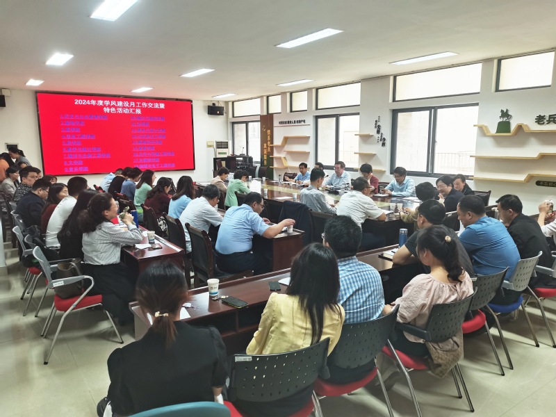 会前,学工委成员查阅各二级学院学风建设月整体开展情况的书面材料。会上,各二级学院交流汇报学风建设月中的特色工作,学工委成员现场评议各二级学院学风建设月特色活动。根据学风建设月活动考核评估指标,结合活动月期间考核结果及评委现场评议结果,最终评出教育科学学院等3个一等奖、文学院等6个二等奖、音乐学院等9个三等奖。