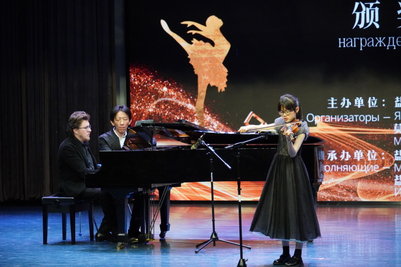 闭幕式上,中俄两国获奖选手为观众献上精彩的文艺节目,不同形式的艺术作品在舞台上交相辉映,钢琴《糖梅仙子之舞》《降A大调大圆舞曲》、小提琴《流浪者之歌》、舞蹈《萨吾尔登礼赞》《乡愁无边》等节目,让现场观众享受了一场视觉听觉盛宴。