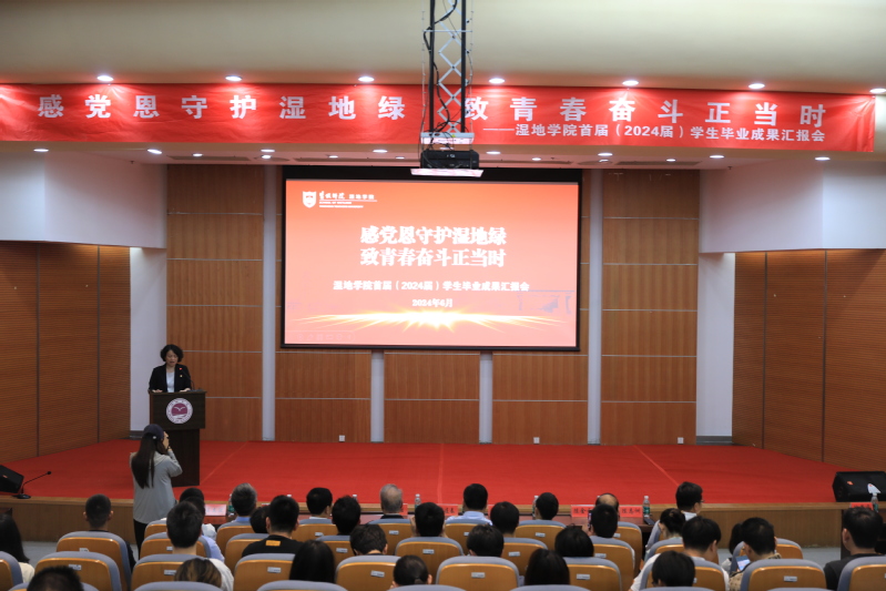 汇报会上,湿地学院首任院长唐伯平汇报学院自成立以来在湿地人才培养方面的主要措施和成效。学院2024届毕业生代表赵鑫月、陈红、江宇豪、潘束菲、郑雨晴分别分享他们的创新之路、奉献之路、求职之路、考公之路、考研之路。