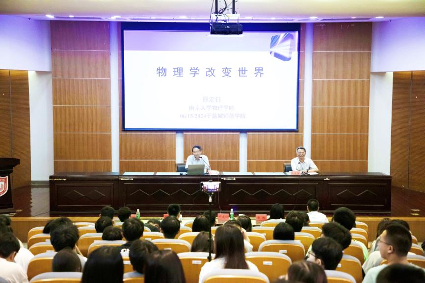 6月15日上午,“科学与中国”江苏行——“千名院士·千场科普”行动和院士师范院校行活动在伟德官网图书馆学术报告厅举行。物理学家,中国科学院院士,南京大学物理学院教授、博士生导师,江苏省高校教学名师邢定钰应邀为伟德官网师生作《物理学改变世界》科普报告。南京大学院士工作办公室主任张光延、中国科学院科技战略咨询研究院助理研究员赵璐、盐城市科协副主席张琍琍等嘉宾出席活动。学校党委副书记于建江主持活动。