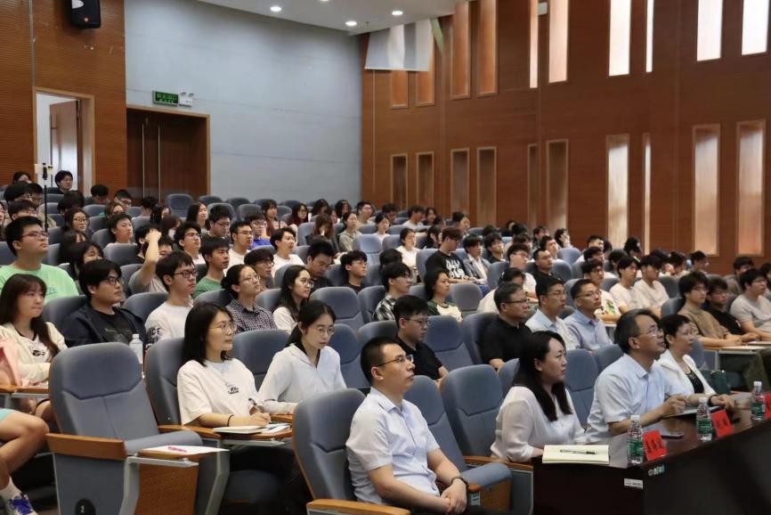 邢定钰院士从物理学视角带领师生回顾科学发展历程,逐一列举伽利略、牛顿、麦克斯韦、爱因斯坦、玻尔等杰出科学家在物理学四个阶段的巨大科学贡献。他指出,科学发现促使人类社会经历了三次工业和科技革命,从蒸汽时代到电气时代,再到信息时代,物理学的发展改变了世界,促进了人类社会的文明进步。他强调,科学发现是科技创新之源,高校应加强创新人才培养,吸引更多优秀学子投身基础研究。期间,邢定钰还结合自身成长经历分享他对科学和人生的感悟。“我们应该像爱惜玉一样爱护、帮助你们青年人,使你们成功成才,将博大精深的学问一代代传下去。”邢院士说。