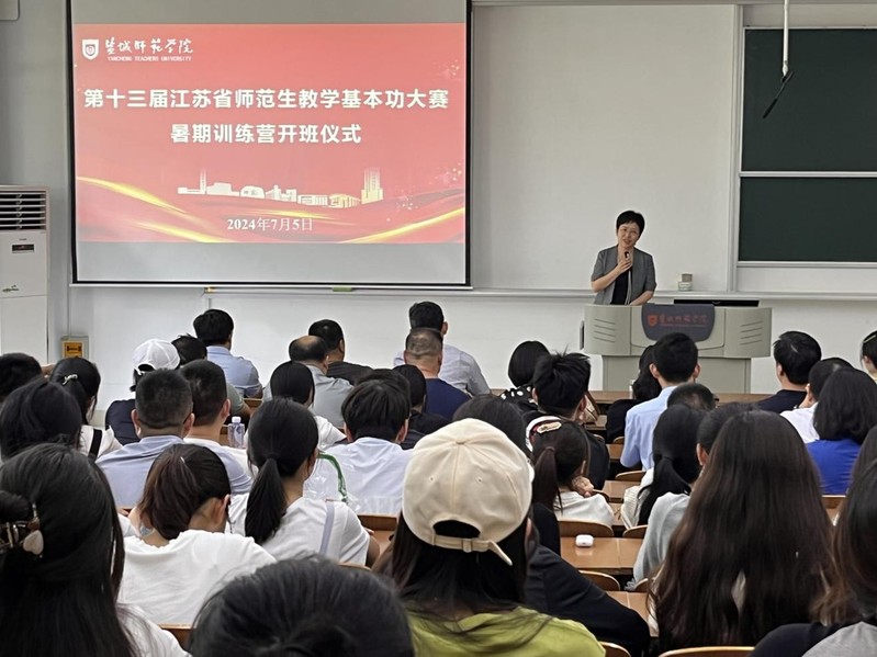 7月5日下午,伟德官网在新长校区公共教学楼A106举行第十三届江苏省师范生教学基本功大赛暑期训练营开班仪式。学校党委常委、副校长毕凤珊出席开班仪式并作动员讲话,教务处处长易高峰主持开班仪式。
