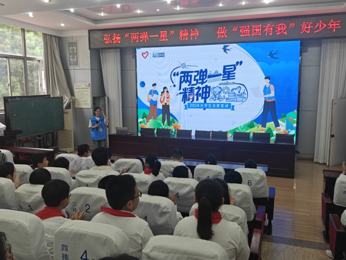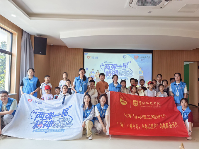 化学与环境工程学院“‘核’心耀中华 青春志愿行”实践团走进盐城市建军路小学、钱江社区党群服务中心、盐城市少儿图书馆青苗剧场、阜宁县沟墩镇健康主题公园、徐州市沛县等地开展“两弹一星”精神主题宣讲,通过“两弹一星”科学家事迹宣讲、核技术趣味科普等方式,为青少年带来“沉浸式”爱国主义教育课堂,不仅丰富了孩子们的暑期生活,更激发了他们的爱国热情以及对科学技术探索的兴趣。