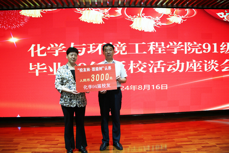 会上,化学与环境工程学院党委书记刘洋简要介绍学院的发展状况。94届校友辛红霞回顾学生生涯,衷心感谢全体教师的辛勤付出并希望大家珍惜同学情谊。学院任课教师代表纷纷发言,勉励大家要有家国情怀,努力奋斗,保持身体健康,在各自岗位上继续发光发热。作为永久纪念,化学94届校友认养“校友林·班级树”。