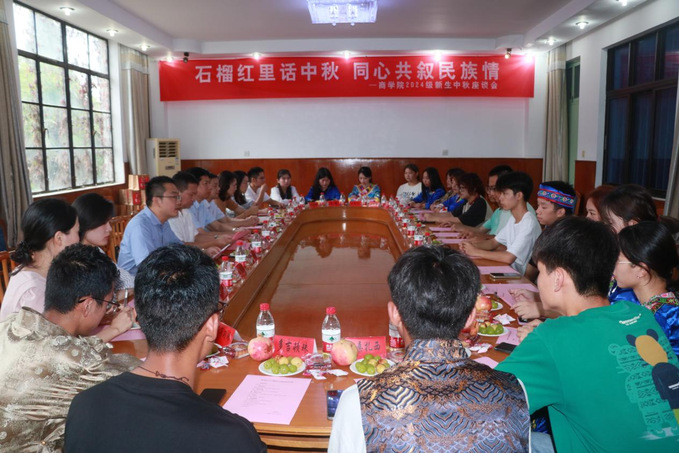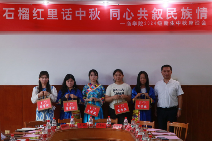 9月16日下午,商学院在通榆校区图书馆综合楼2楼会议室举办“石榴红里话中秋,同心共叙民族情”2024级新生中秋座谈会。座谈交流中,同学们踊跃发言,分享本民族文化特色、传统习俗以及入学以来的所思所想。在场老师就大家在学习和生活上遇到的困惑交流探讨。学院还为新生发放了慰问大礼包,并准备了象征“民族团结”的石榴和承载“团圆与祝福”的月饼,希望广大新生在新的学习环境中过一个有意义的中秋节。