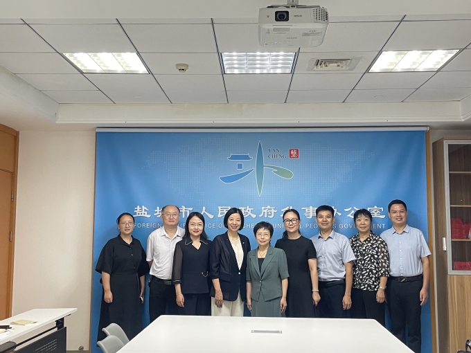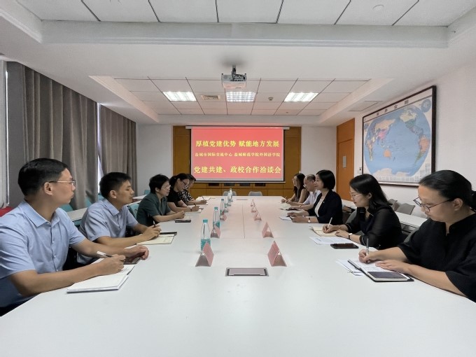 9月18日下午,学校党委常委、副校长毕凤珊带队前往盐城市人民政府外事办公室开展党建共建、政校合作洽谈会。盐城市外办主任周晓晴、盐城市国际交流中心主任叶媛、副主任夏文海、王昕昕出席会议。