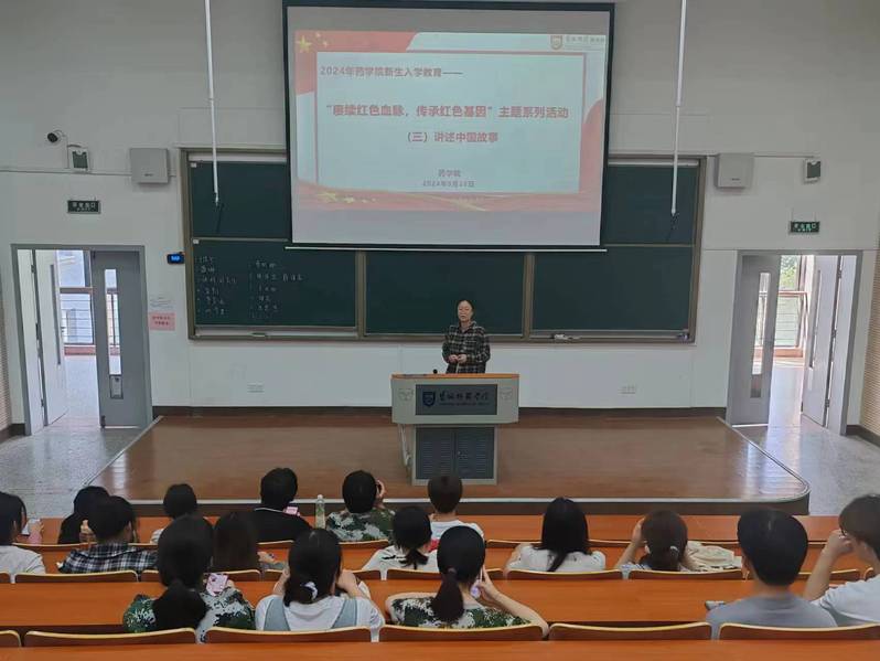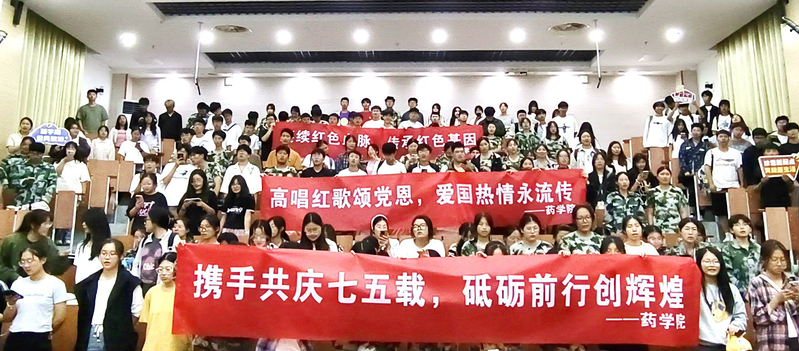 在药学院“唱红歌,颂祖国”活动现场,全体新生集体唱响《没有共产党就没有新中国》《我和我的祖国》《歌唱祖国》等歌曲,在一句句经典歌词中,仿佛把大家带回到了那段波澜壮阔的革命岁月。现场还举行了“红歌接龙”“歌名猜猜猜”等活动,大家热情高涨、积极参与,在红色经典歌曲的传唱中,抒发爱国情、报国志。在“讲故事 诉衷情”活动现场。同学们纷纷走上讲台,深情讲述革命先烈的英雄故事以及新中国从站起来、富起来到强起来的腾飞故事,还分享了大家暑假投身社会实践的青春故事,在一个个生动的故事中坚定青年的责任担当。