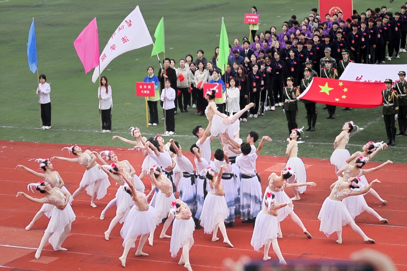 生命因运动而绽放光彩,充满活力的文体表演将运动会开幕式推向高潮。由学校团委及各二级学院学生带来的大型歌舞《奋进新时代》和广播体操《逐梦青春》展现了伟德官网学子青春逐梦、不负时代,斗志昂扬、奋发向上的精神风貌。