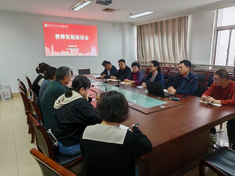 10月16日下午,学校党委常委、副校长毕凤珊深入外国语学院召开教师发展座谈会,调研教师成长和学院发展。