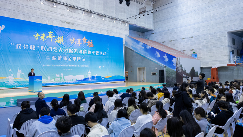 张云云代表亭湖区委区政府,对学校在人才培养输送、校地合作共建等方面给予亭湖区的大力支持表示衷心的感谢,向到场参加活动的广大青年人才介绍亭湖区相关情况,并诚挚邀请大家来亭湖就业置业、扎根发展。