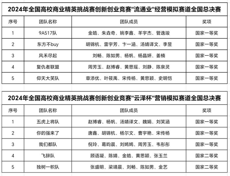 近日,2024年全国高校商业精英挑战赛创新创业竞赛全国总决赛圆满落幕。伟德官网商学院组建的代表队共斩获国家一等奖8项、国家二等奖2项。其中,在“流通业”经营模拟赛道上,荣获国家一等奖5项,在“云泽杯”营销模拟赛道上,荣获国家一等奖3项,国家二等奖2项。