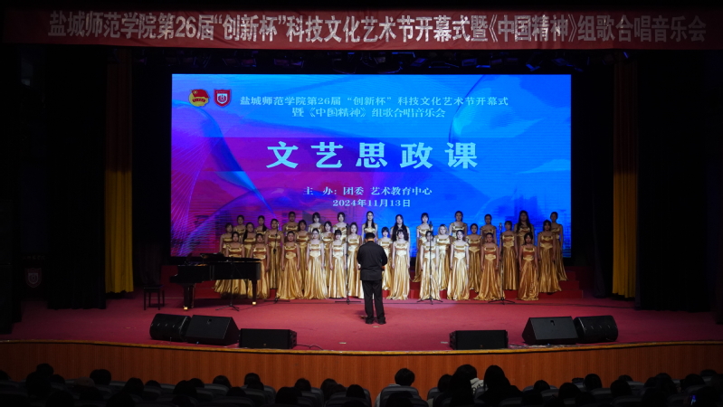 11月13日下午,第26届“创新杯”科技文化艺术节开幕式暨《中国精神》组歌合唱音乐会在新长校区大学生活动中心举行。学校党委常委、副校长庞波出席活动。