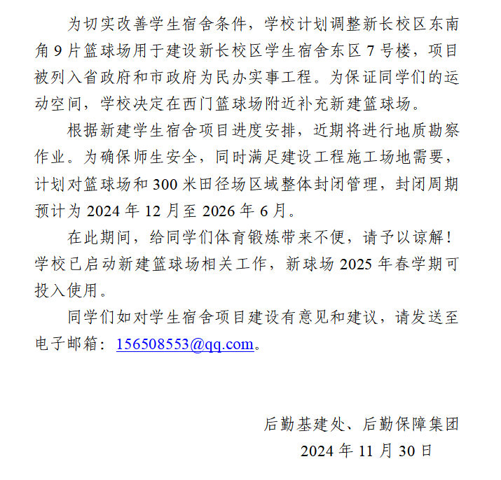 关于封闭新长校区东南角运动场区域的公告