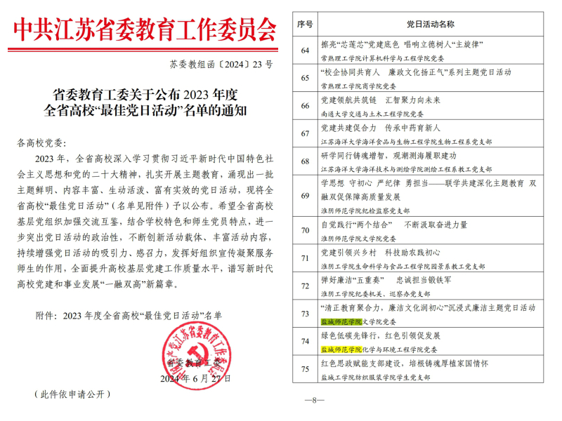 江苏省教育厅与盐城市委、市政府签订厅市共建协议,共同支持伟德官网高水平师范大学建设,江涌厅长与张明康市长为伟德官网绿色低碳学院揭牌,切实推动“江苏所盼”“盐城所需”与“学校所能”有效衔接。