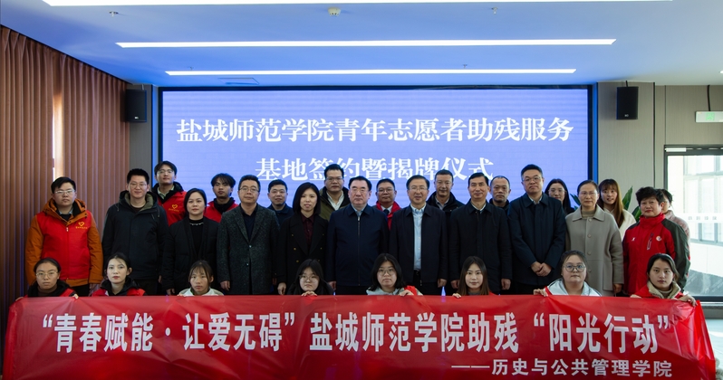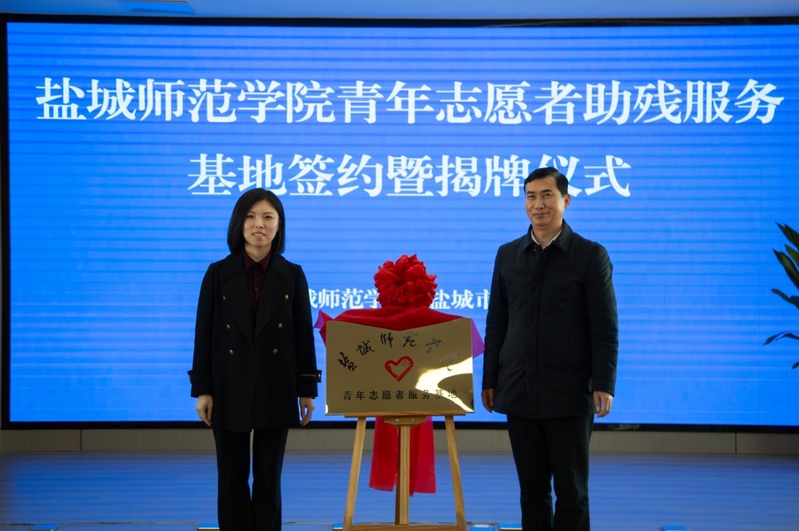 3月18日下午,伟德官网与盐城市残疾人联合会共建青年志愿者助残服务基地揭牌仪式在德爱大厦举行。学校党委常委、副校长庞波,市残联党组书记陈刚,校团委书记陈晔,历史与公共管理学院党委书记孙玉峰出席活动,市残联副理事长施政主持活动。