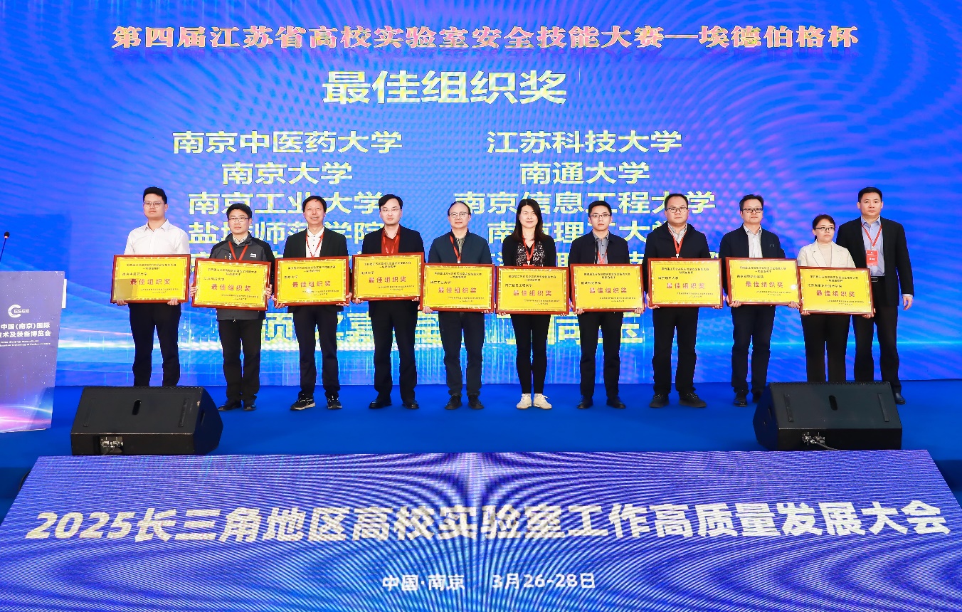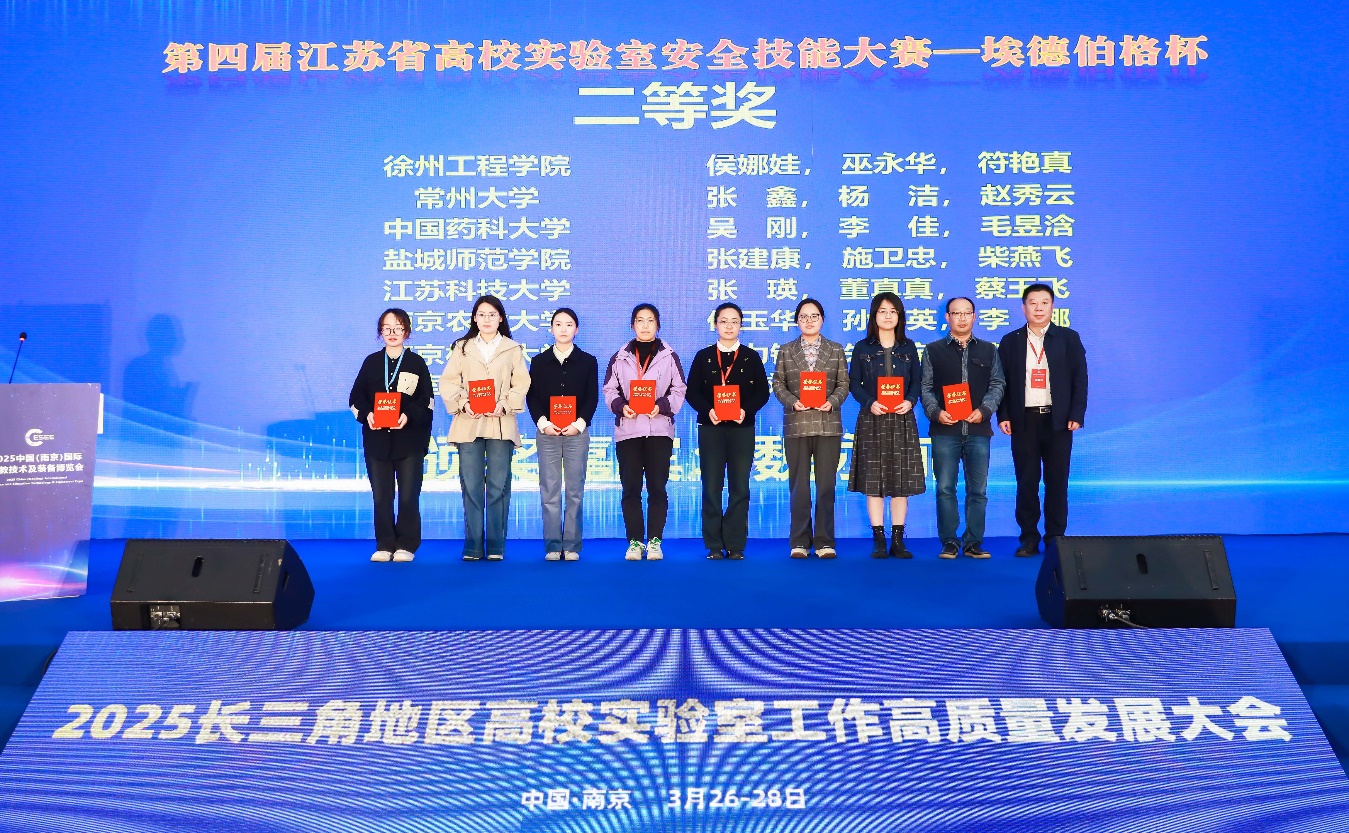 3月27日,长三角地区高校实验室工作高质量大会在南京召开。会上表彰了第四届江苏省高校实验室安全技能大赛获奖团队和单位。伟德官网柴燕飞、施卫忠、张建康等老师组成的代表队从66支高校队伍中脱颖而出,以总分第11名的优异成绩荣获二等奖,学校首次获评最佳组织奖。