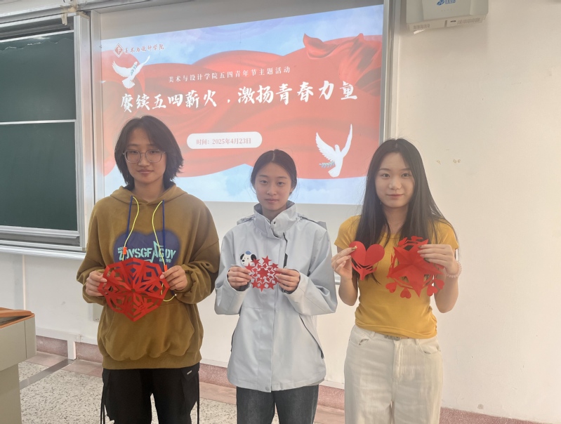 美术与设计学院举办“五四青年节美育课堂”主题创意剪纸与书法展示活动,用传统文化赋能青年理想信念教育。活动中,同学们以红纸作为画布,将“五四精神”“青春”“梦想”等关键词化作灵动的剪纸作品,同学们还结合专业所长,以五四精神为引领,临摹经典优秀书法作品。