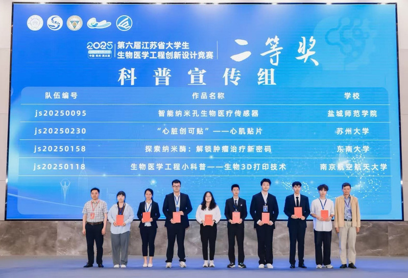 据悉,本次赛事由江苏省生物医学工程学会、东南大学主办。共吸引全省24所高校298支队伍报名参赛,经初赛选拔,79支队伍角逐决赛,53支队伍获三等奖。