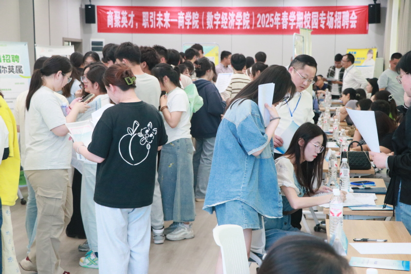 学校招生就业处、商学院(数字经济学院)负责同志,系主任、辅导员、全校2025届毕业生等共计500余人参加招聘活动。