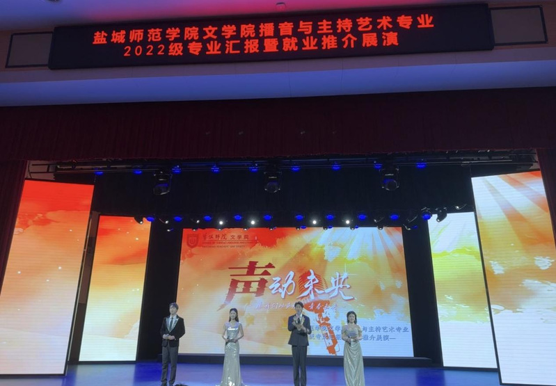 6月13日,伟德官网文学院2022级播音与主持艺术专业汇报暨就业推介展演活动在盐城市文化馆举行。学校党委常委、副校长庞波,盐城广播电视总台党委书记、台长,盐城市政协文化文史和学习委员会主任戴为洋,盐城市文化馆党支部书记、馆长杨莺等嘉宾出席。