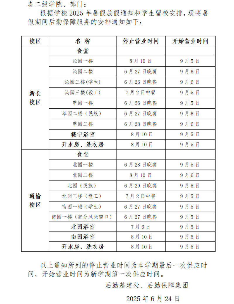 2025年暑假后勤保障服务安排的通知