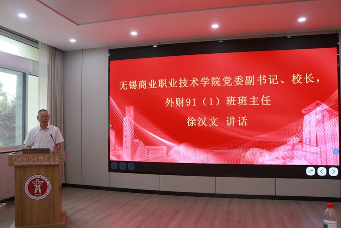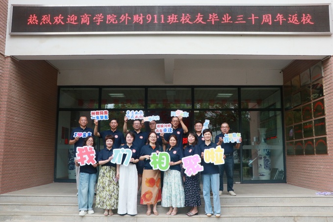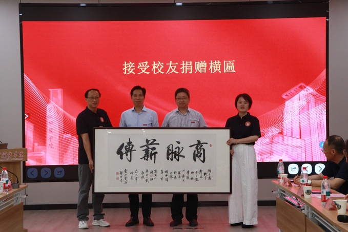 庞波代表学校接受校友认养的“校友林·班级树”。商学院(数字经济学院)党委副书记、院长殷凤春介绍学院高质量发展情况及未来发展规划。外财91(1)班班主任,无锡商业职业技术学院党委副书记、校长徐汉文深情回忆师生相处的难忘时光,对校友毕业后取得的成绩深感欣慰。校友代表、外财91(1)班班长王超分享自己在母校的求学经历和工作后的成长历程,表达对母校培育和恩师教诲的深切感恩。会上,商学院(数字经济学院)领导接受校友捐赠的横匾。